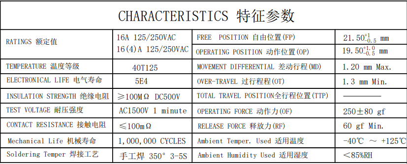 Operating Force:250±80gf