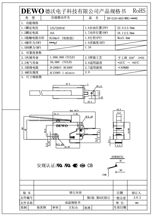 DV-16-A03-WW1-060E型微動(dòng)開關(guān)