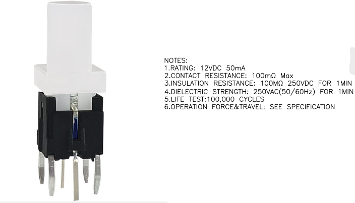 Dielectric strength: 250VAC (50/60Hz) For 1 MIN