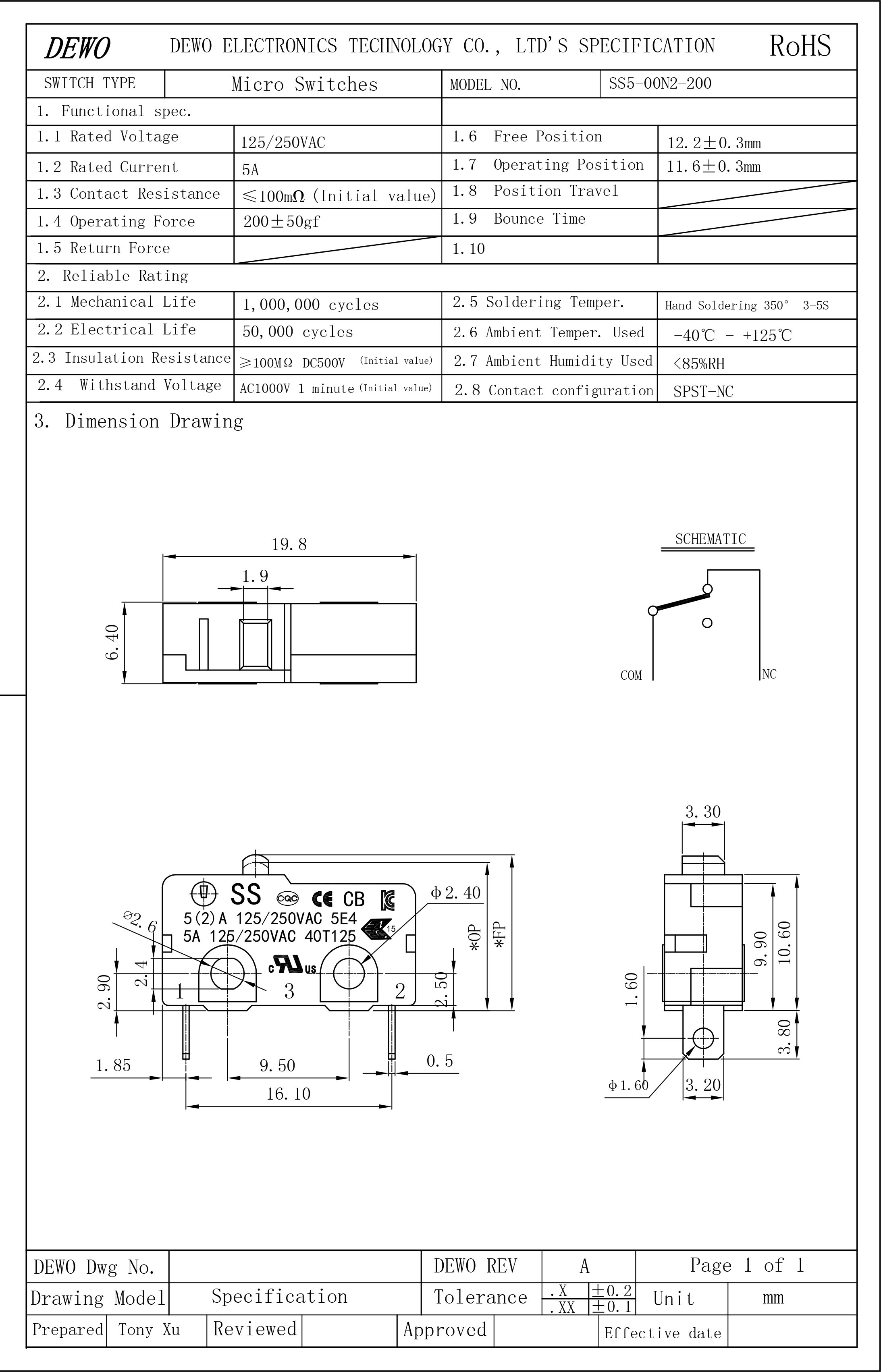SS5-00N2-200微動開關