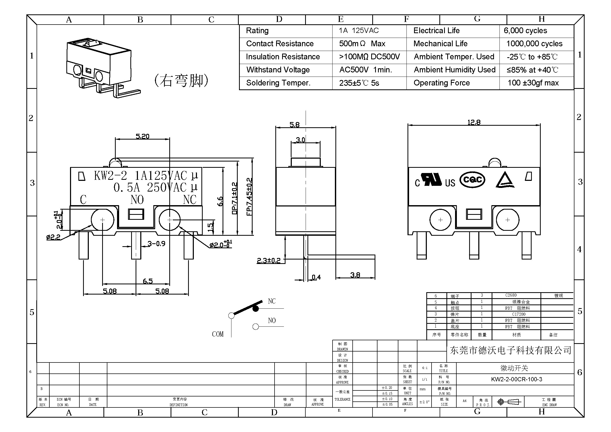 2.觸點(diǎn)材質(zhì):銀鎳合金.