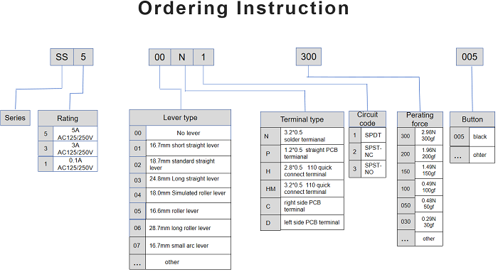 Terminal type: Solder terminal/Straight PCB terminal/110 quick connect terminal/ left side PCB terminal/ right side PCB terminal